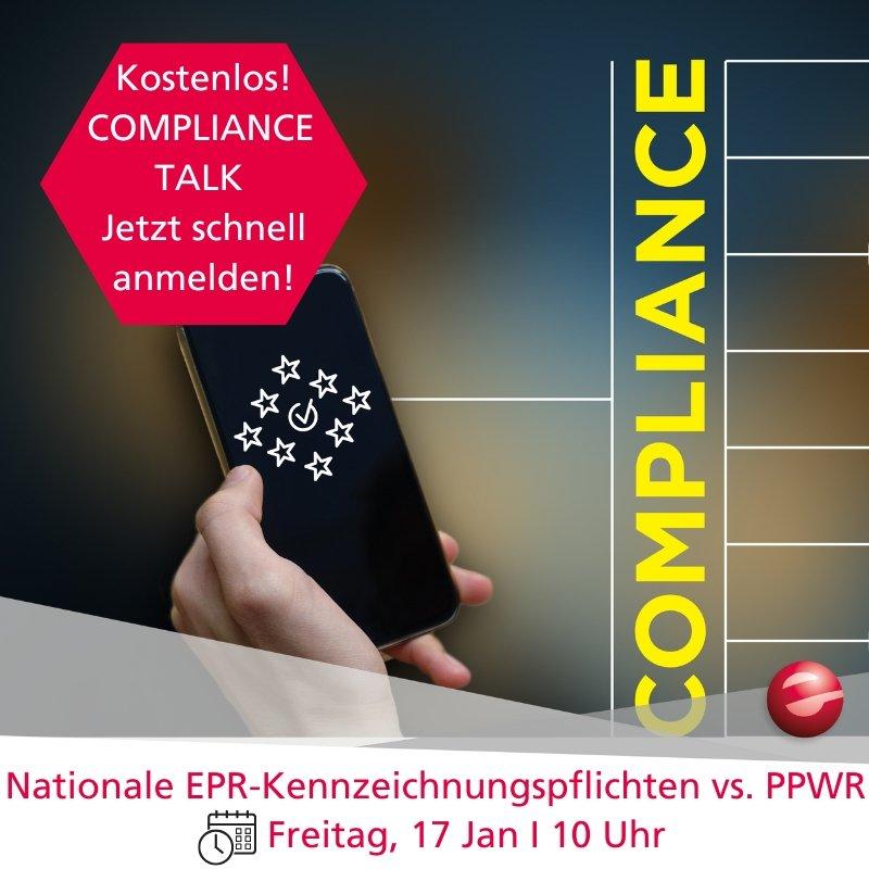 Freitag, 17. Januar – 10:00 – 11:00 Uhr. CET – Kostenlosen Compliance Talk im Januar: EU-Verpackungsverordnung vs. Nationale EPR-Kennzeichnungspflichten –…