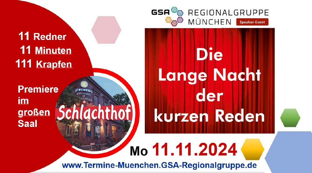 Nach den gelungenen Speaker-Events in den Jahren 2016, 2017, 2018 , 2019, 2021, 2022 und 2023 lädt die GSA-Regionalgruppe München…